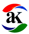 Stylized logo with the words 'aK' in the center, surrounded by curved shapes in red, blue, and green colors.